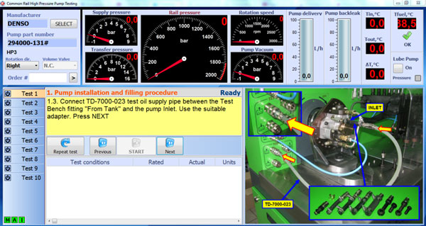 Special unique detailed pump testing procedure that allows to easily find failed components: